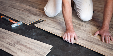 フローリングやクッションフロア、カーペットなどを床材を床にはめ込んでいきます。